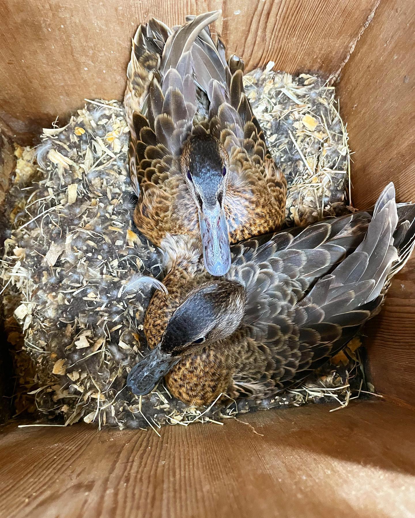 Joint nests do not happen often here but sometimes, there is that one nest in that one spot that they all covet. Rather than fight about it, these two cinnamon teal have seemingly agreed to coexist within this box. #jointnesting #cinnamonteal